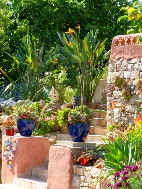 O jardim do Ludgero, "dedicado" a plantas suculentas, mais uma vez recebeu mudas de estrelícias (Strelitzia reginae). Fomos buscá-las à estufa da família, para plantar junto da nova escada que está em construção.