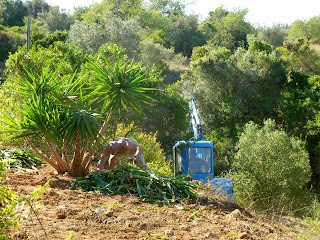 Ao visitar o espaço, com o qual me identifiquei de imediato, reconheci o imenso potencial e desafio que o amigo Hélder tem pela frente, e de imediato comecei a "meter o bedelho"... Agora, sempre que encontro algo na berma da estrada, como plantas, e quando acho que tem a "cara" do Hélder, lá vai tudo para o terreno dele. Exemplo disso, entre muitas outras coisas, foram os Agaves attenuatas e estas enormes yuccas elephantipes. São plantas que, apesar (ou por isso) de abandonadas ou deixadas à beira de um caixote do lixo, são elementos importantes num novo projeto, pois representam uma enorme poupança. Só como referência, as 4 yuccas deste dia, se fossem compradas num gardem center, poderiam custar talvez 1000 euros (na carrinha estão apenas duas).