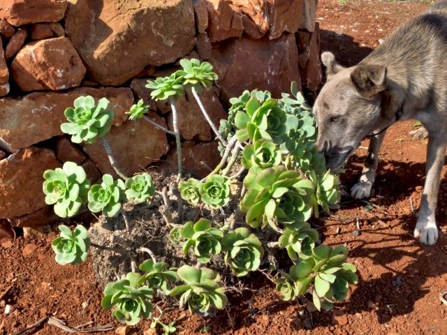 Por agora, tenho dedicado os meus dias a limpar o terreno de algumas pedras, usando-as na construção de um canteiro para plantas suculentas, O objetivo é dar uso a todo este material (que inclui dois potes partidos e algumas plantas que encontrei junto ao caixote do lixo) e criar um espaço ajardinado de baixa manutenção. Tudo isto tem tido a supervisão do Bolinhas, o"canito marafado" que diariamente me faz companhia.