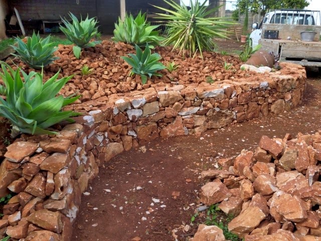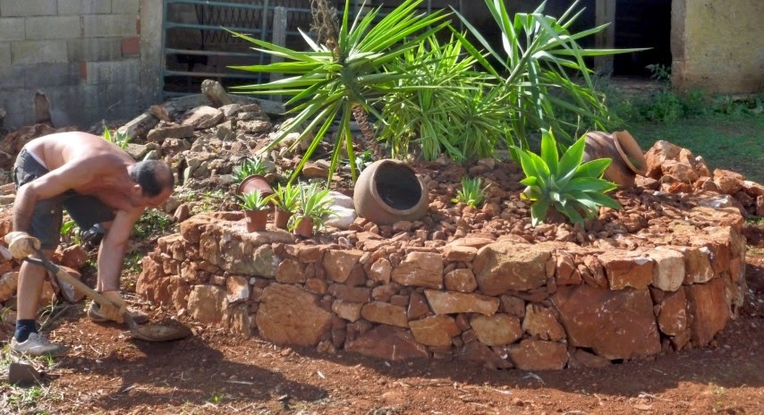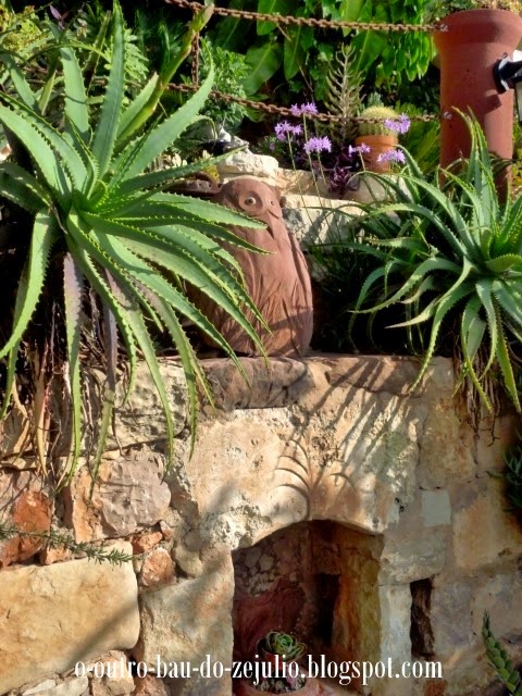 Eis mais algumas fotos do que tenho andado a fazer nos últimos dias. Pedra a pedra, planta a planta, vou dando forma àquilo que será o início de mais um jardim, uma nova paixão. Tentarei demonstrar, mais uma vez, como é possível criar um jardim original e barato, recorrendo apenas a coisas (plantas, vasos partido, pedras,etc...) que foram jogadas fora por outras pessoas, e também a estacas de plantas. Este será igualmente um jardim sem regas, que sobreviverá apenas com a água da chuva. É o meu mais recente desafio, sempre com a supervisão do "Bolinhas", o canito da quinta...